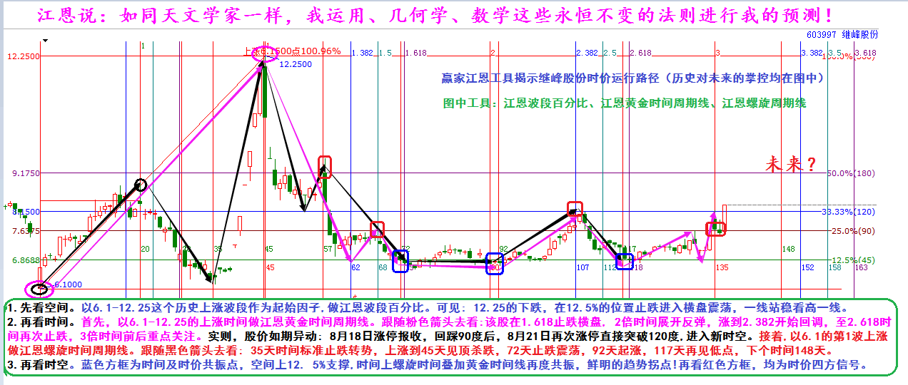 贏家江恩工具揭示繼峰股份時(shí)價(jià)運(yùn)行路徑(歷史對(duì)未來(lái)的掌控均在圖中)