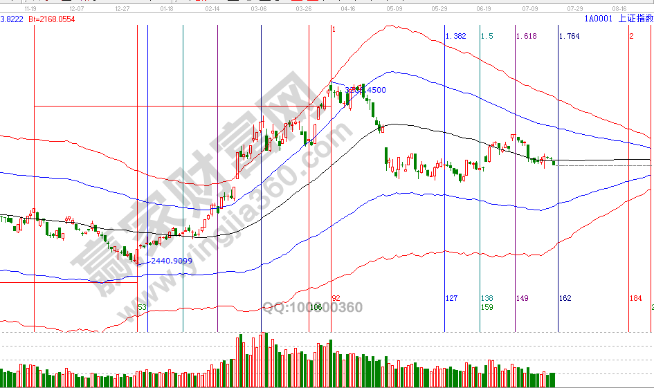 指數(shù)早盤低開失守極反通道生命線進(jìn)入弱勢區(qū)域,并全天在線下運(yùn)行;空間工具,波段百分比延伸線、江恩價(jià)格四方形,指向明天盤中支撐是2880附近;時(shí)間方向,7月初通過江恩時(shí)間工具測算的本月第三個(gè)時(shí)間窗口是23號(hào)(第一個(gè)3號(hào)市場見階段高點(diǎn),第二個(gè)15號(hào)市場見短線拐點(diǎn)),下周科創(chuàng)板上市場交易,市場資金受擴(kuò)容壓力主板而轉(zhuǎn)低迷,按判斷生命線規(guī)則3天、量能原則,23號(hào)關(guān)注指數(shù)與生命線關(guān)系明確趨勢方向選擇。下個(gè)時(shí)間窗口是23號(hào)(黃金時(shí)間周期線0.5位置、24節(jié)氣大暑),7月19號(hào)盤中壓力是135度2911點(diǎn)、180度2928點(diǎn),盤中支撐是45度2877點(diǎn)、0度2860點(diǎn)。操作策略,指數(shù)失守極反通道生命線,失守2911點(diǎn)按計(jì)劃獲利兌現(xiàn)部分倉位,觀察2880支撐有效性決定是否做倉位回補(bǔ),整體持倉保持3成左右。
