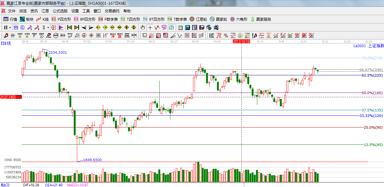 ☆依據贏家江恩系統波段百分比提示:62.5%與66.67%形成震蕩帶,此區間以上則短線、波段持股,跌破則減倉;