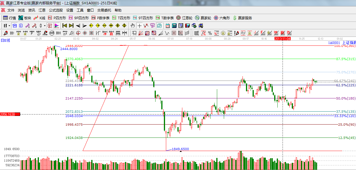 ☆依據贏家江恩系統波段百分比提示:日K線繼續在62.5%與66.67%區間震蕩,此區間以上則短線、波段持股,跌破則減倉;